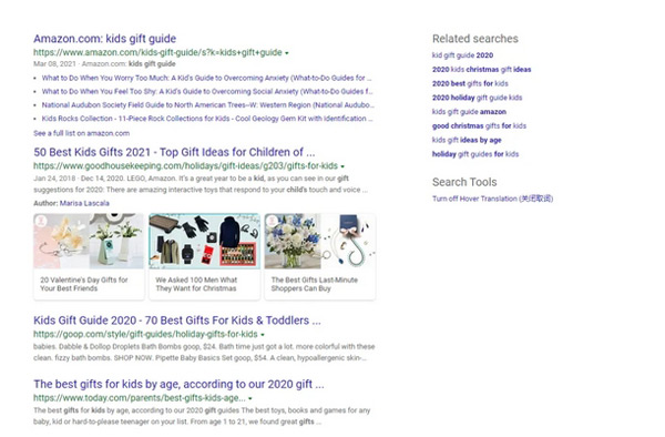 比如我们搜索:kids gift guide,就会出现很多网站。